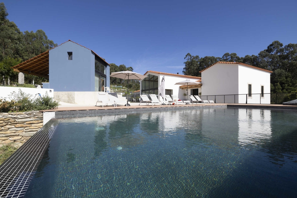 “Isto era uma casa agrícola, e dentro de quatro anos faz 300 anos”, começa por contar Domingos, que trabalha em serigrafia e na agricultura. O terreno já pertencia à família, e os campos estavam cultivados com maracujazeiros e medronheiros, mas a casa manteve-se degradada até 2019, ano em que começaram as obras de recuperação. Hoje, A Casa da Milheira – designação conforme pedra encontrada nas ruínas da casa original – é um alojamento moderno, confortável e inclusivo, que recebe pessoas com mobilidade reduzida em qualquer divisão. Mas não foi só o nome que se fez questão de manter, a casa da eira também ainda existe, embora a sua função já não seja guardar alfaias agrícolas e oferecer um sítio para secar o milho. Agora é um espaço com mezanine que acomoda quatro pessoas e que serve também para dar apoio à piscina infinita – tratada naturalmente com sal – quando não está a ser utilizado.