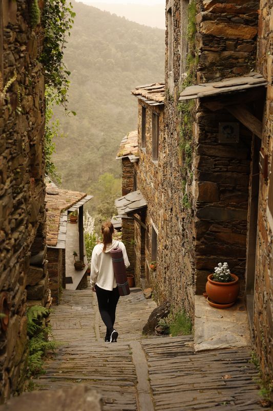 As 30 casas que acompanham esta encosta declivosa da Serra da Lousã servem de exemplo à escala real para a construção de uma miniatura, com pequenas pedras de xisto escuro colhidas pelos participantes no terreno, enquanto Tatiana Simões, gestora da Escola de Artes e Ofícios da Cerdeira – Home for Creativity, fornece um breve enquadramento da arquitetura da aldeia, de pé há 300 anos. “As pedras maiores eram a base e o sustento das paredes, enquanto as pequenas preenchiam os espaços e o preparado de barro impedia a entrada de chuva e vento”.