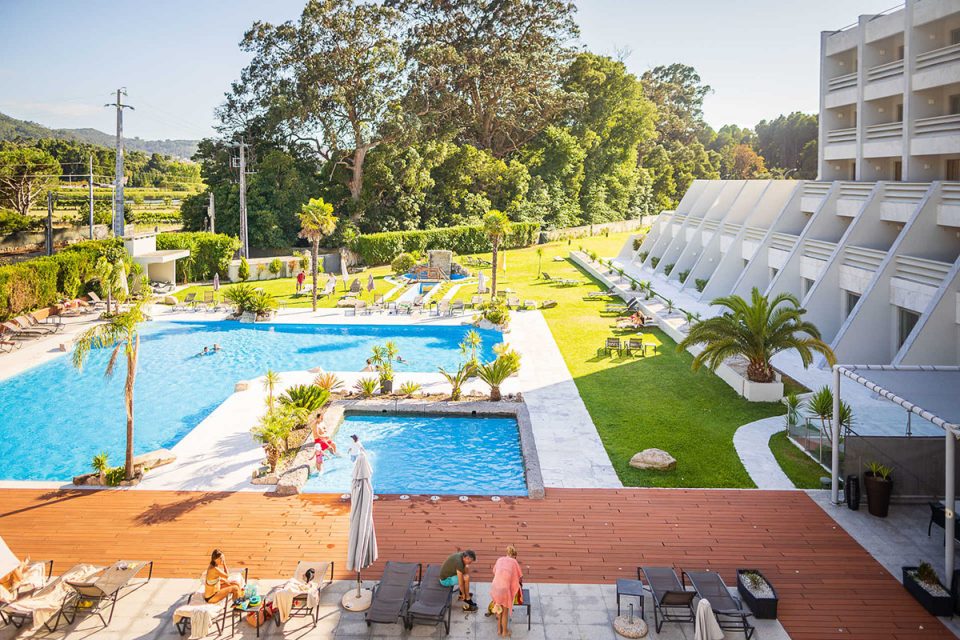 O hotel tem 106 quartos, dos quais 30 oferecem vista panorâmica para a foz, contando-se entre eles as sete suítes com 52 metros quadrados, com jacuzzi privado. O hotel conta ainda com uma grande piscina. E se esta região de grande beleza conforta o olhar, o hotel, que teve obras de melhoria durante o período de confinamento procura confortar também outros sentidos – dos quartos equipados com cómodo luxo até ao Candle Spa, que foi totalmente renovado. As massagens duplas para casais e o SPA Kids, para uma experiência conjunta de pais e filhos, com massagens para crianças, são as últimas novidades.