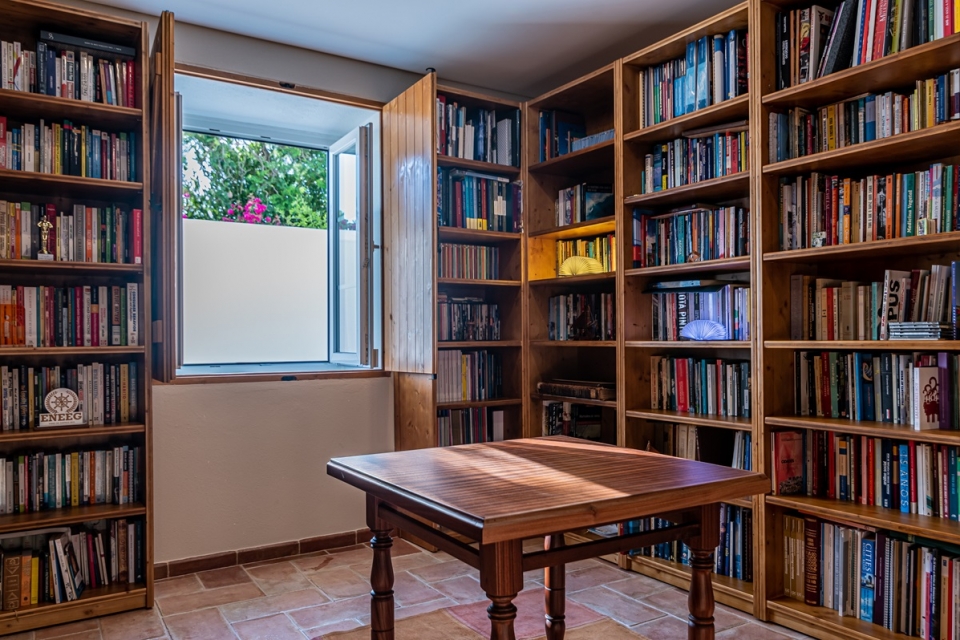 Os próprios quartos duplos (com capacidade para cama extra) têm temática literária: um evoca a história de Lisboa e seus poetas, como Fernando Pessoa; outro está ligado ao interior e às montanhas, inspirado na obra de Rentes de Carvalho, contando com fotografias cedidas pelo próprio; e um terceiro, “o maior quarto de alojamento local do Alentejo, com 53 metros quadrados”, é dedicado a Miguel Torga. Depois há as zonas comuns: sala de estar com snooker e piano; escritório; jardim com piscina exterior e churrasqueira; e claro está, a biblioteca onde se reúnem muitos dos livros da casa.