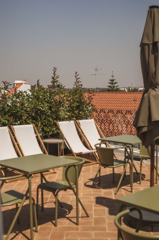 A atenção aos pormenores estende-se aos 12 quartos nos pisos superiores da casa senhorial, cujos azulejos e escadaria em mármore e ferro se recuperaram. O interior, de um “minimalismo nórdico com cunho alentejano”, eterniza expressões alentejanas como “vagar” e “fazer as onze” e oferece amenities orgânicos da marca portuguesa Águamole e um roupão perfumado por um ramo de alfazema. Os clientes podem gozar ainda de uma sala de estar com máquina de café.