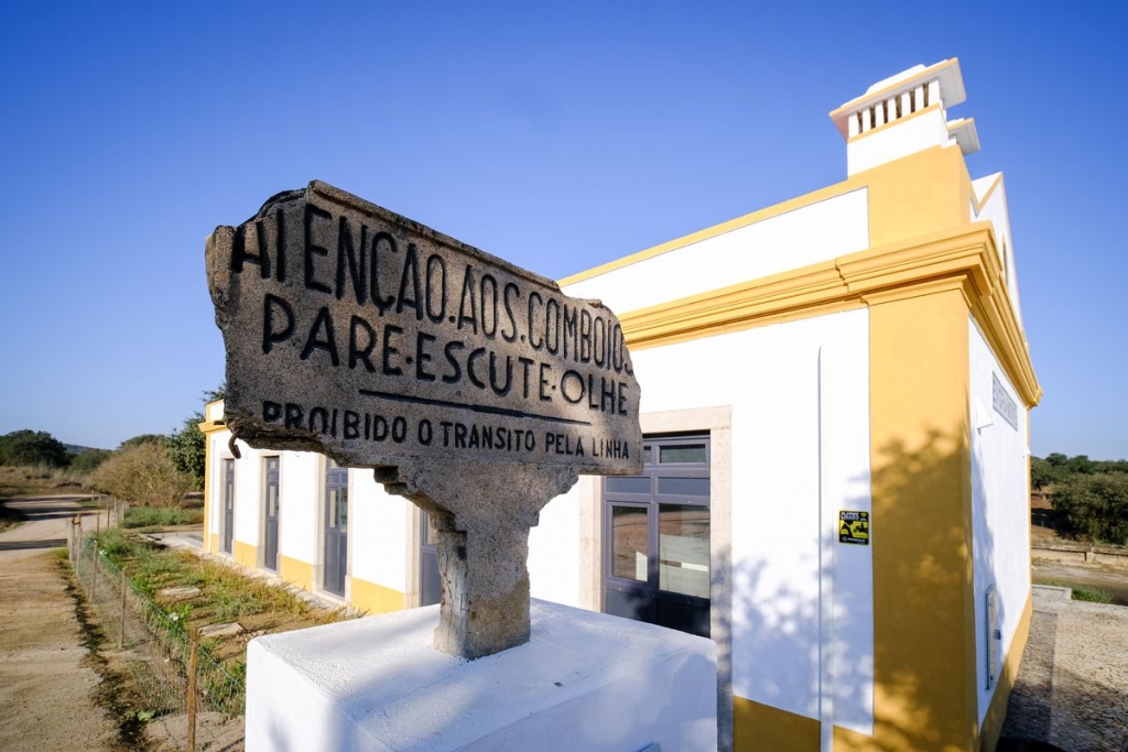 “Atenção aos comboios. Pare, escute e olhe”. Já lá vai o tempo em que este aviso inscrito na pedra recomendava cautela aos peões no momento de atravessarem a linha férrea, neste ramal da Linha de Évora que antigamente ligava o Vimieiro à estação de Estremoz. Com o serviço de passageiros desativado no início da década de 90, foi desclassificado e permaneceu votado ao abandono até Miguel Conin, com raízes familiares e um agroturismo em Évoramonte, decidir recuperá-lo.