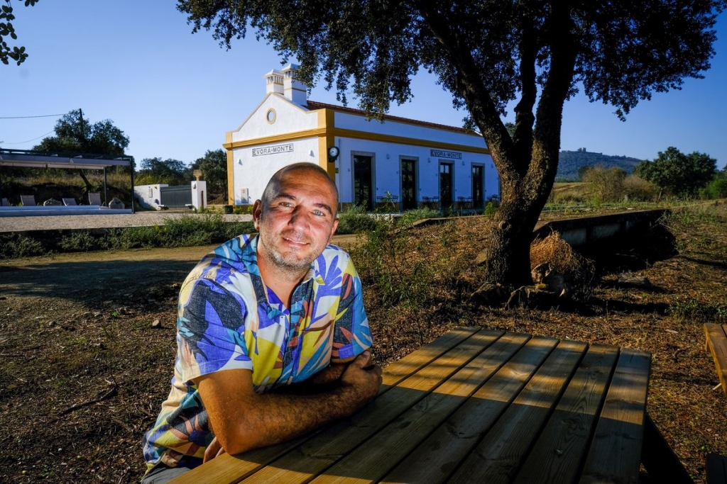 “Estava tudo devoluto”, diz enquanto caminha sobre o perfume da esteva molhada na noite anterior, no meio da paisagem de montado de sobro e azinho. “Ali ficava o cais de mercadorias, e ali era a casa do chefe da estação”, aponta o empresário de 45 anos que se virou para o turismo, ao fim de muitos anos na Portugal Telecom. Com o agroturismo Casas de Santa Rita, criado há quatro anos num monte alentejano, mudou-se para perto da tranquilidade e natureza desta região.