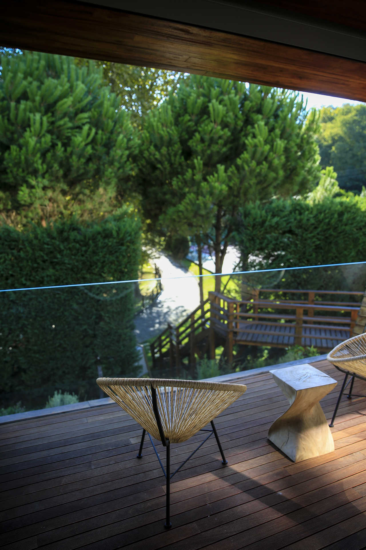 Varinho, Maria, Lininha e Princesa são as quatro casas abertas aos visitantes, que encontram ali conforto de braço dado com a natureza. A primeira é um T2 com terraço de dimensão generosa, a deixar ver um pedaço do Tâmega, enquanto as restantes são de tipologia T1. A madeira que em parte as reveste dá-lhes um encanto especial, sobretudo se estivermos nas varandas forradas com esse material aconchegante, qual ninho, de olhos no verde. As casas herdaram os nomes de antigos moradores, com exceção da Princesa, em cujo mezanino cabe uma cama king size. “Tivemos aqui um jovem arquiteto que estava apaixonado pela casa. Dizia: ‘É a minha princesa’. E ficou Princesa”, explica Viive, com um sorriso.