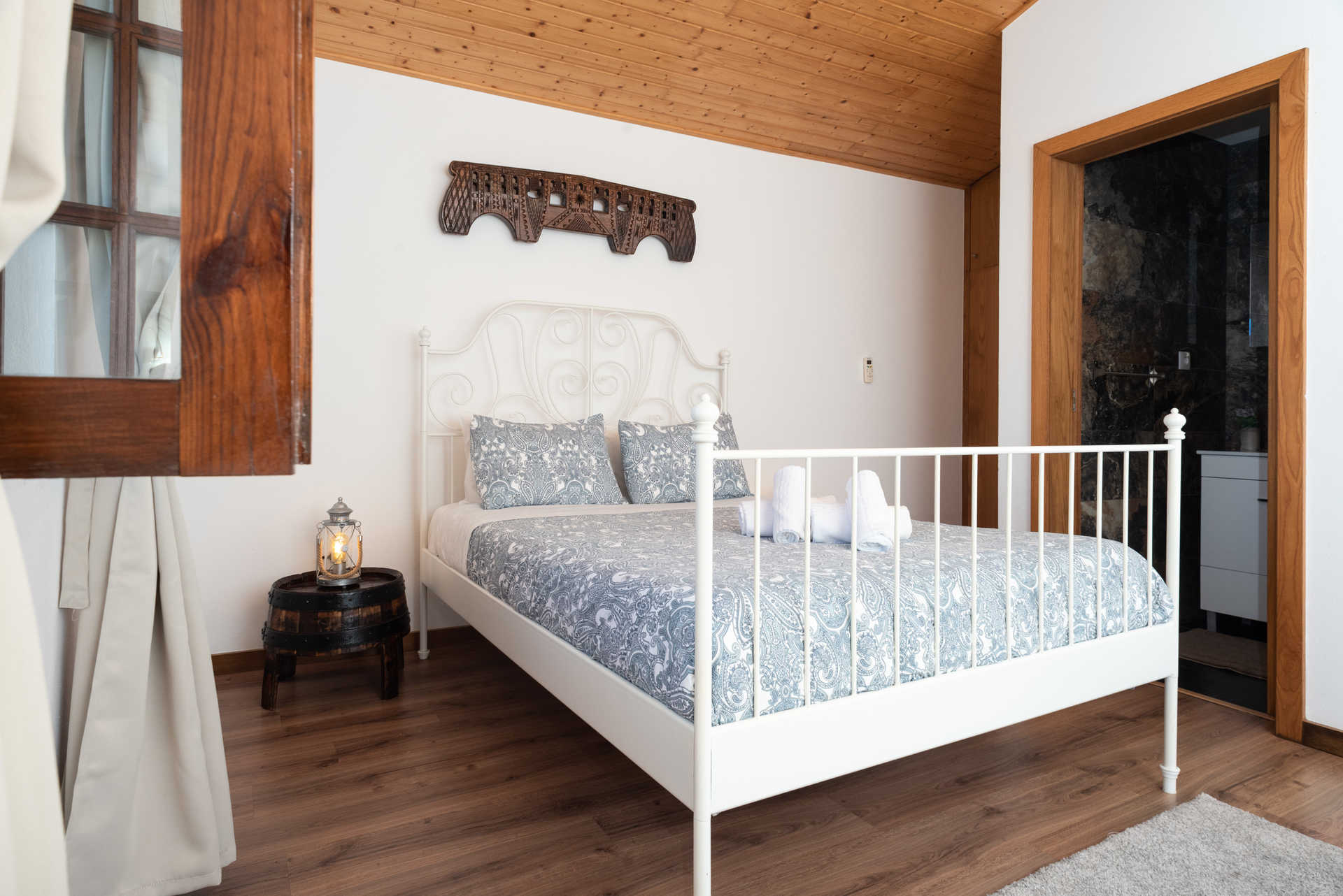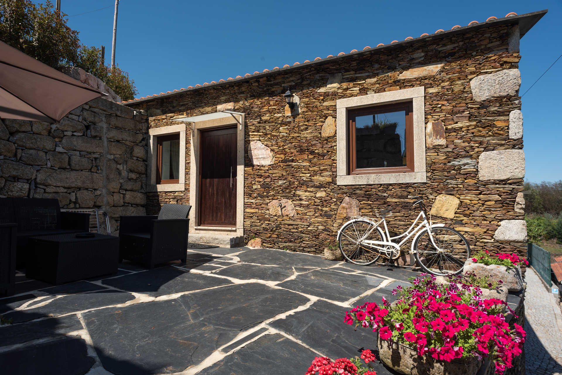 À chegada vê-se logo, revestida de pedra, a Casa da Casada, um T2 com varanda. Outrora, acolheu os moços que vinham de locais mais distantes para trabalhar naquelas terras, onde havia gado e se produzia vinho, conta Leandro Ferreira, recordado ainda das cubas, pipas e salgadeiras para conservar a carne. Essa primeira casa, com capacidade para seis pessoas, graças ao sofá-cama, é procurada sobretudo por famílias. Já os casais tendem a preferir o Espigueiro da Casada, um antigo espigueiro, com eira em frente, convertido em T1.