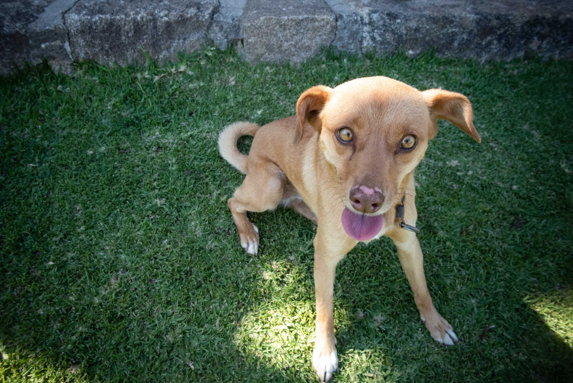 - A cadela Pitusca e a piscina, com vista para a Capela de Nossa Senhora da Livração. (Fotografias de André Rolo/GI)
