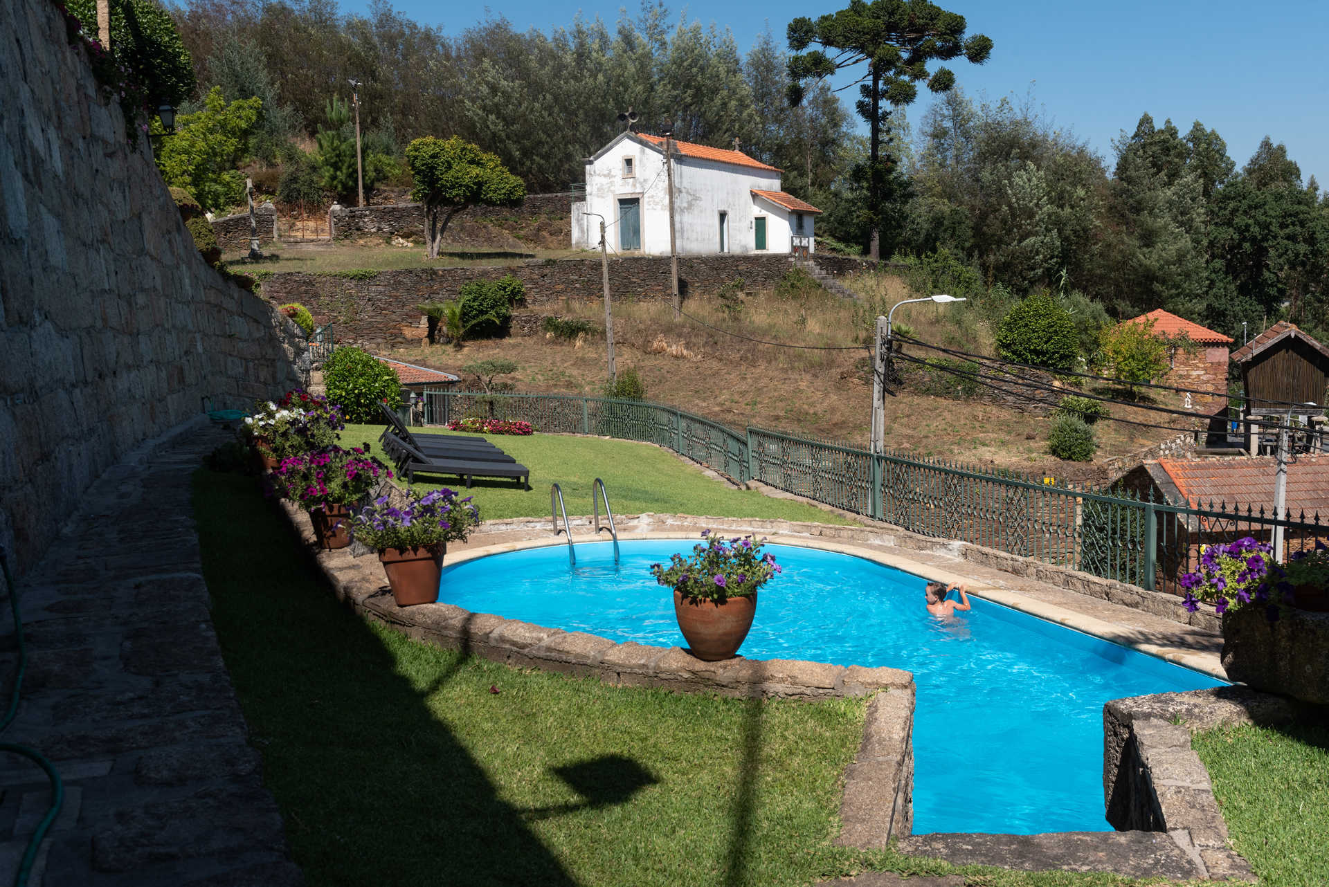 A capela é visível do jardim, com piscina e espreguiçadeiras. Por estes dias, tornam-se particularmente apetecíveis os exteriores animados por flores coloridas. Em volta, há algumas atrações. Os Moinhos de Jancido ficam a um par de quilómetros, assim como a Marina da Lixa, que Leandro recomenda para ver o pôr do sol. Não muito longe, existem também duas praias fluviais: a de Zebreiros, no concelho de Gondomar; e a de Crestuma, já em Vila Nova de Gaia.