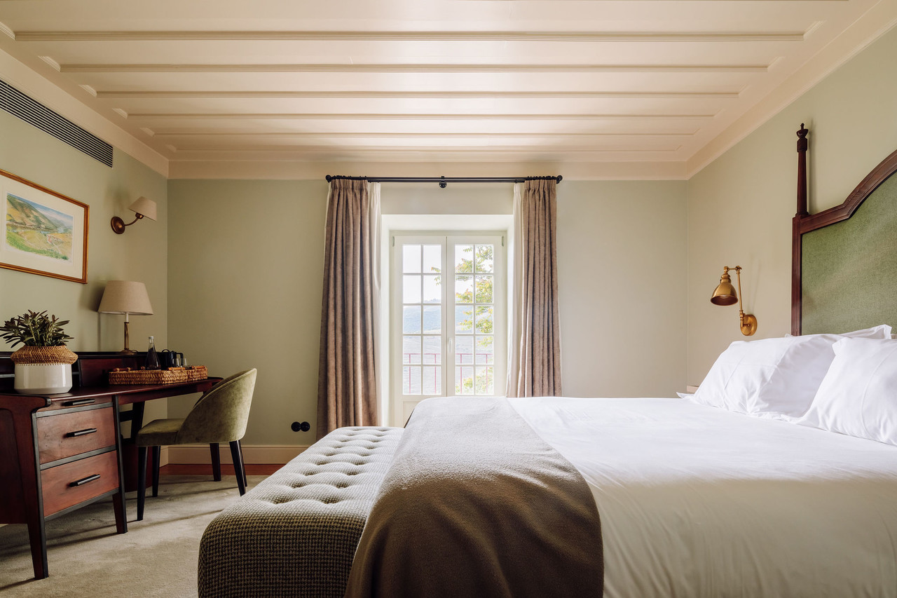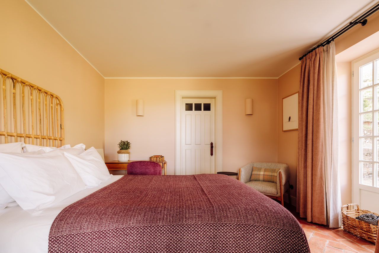 Com o projeto de renovação, manteve-se o mesmo número de suítes (11 no total), e todas estão agora equipadas com chuveiro, em casas de banho forradas a xisto e janelas abertas para uma paisagem de postal, que aliás, é quadro copioso em qualquer janela da casa. Enquanto os quartos Premium (localizados na casa principal), tomaram tons mais sóbrios, em verde, e com cadeirões forrados a tartan, os Terrace, que têm acesso independente pelo terraço exterior, primam por um ar mais jovial e romântico, com camas de bambu, chão em tijoleira tradicional portuguesa e uma paleta de cores dominada pelo rosa e ocre.