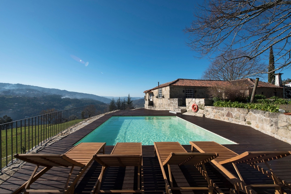 O alojamento é apenas um dos 13 edifícios espalhados pela Quinta de Pinhete, rasgada pela Estrada Nacional 108, que aguardam a sua vez para serem recuperados pela família. “A quinta era produtora de vinho, mas com o crescimento do turismo acabamos por mudar o conceito e reconverter a propriedade”, partilha Aníbal. A transformação não se ficou apenas pela casa. Os sete hectares de vinha que rodeavam a quinta deram lugar a um parque, que juntamente com os jardins oferece uma boa dose de espaços verdes para explorar. Os hóspedes têm ainda à disposição uma piscina panorâmica de água salgada com vista para o rio, as montanhas e o vale, e uma apetecível varanda, que convida a um copo de vinho ao final da tarde.