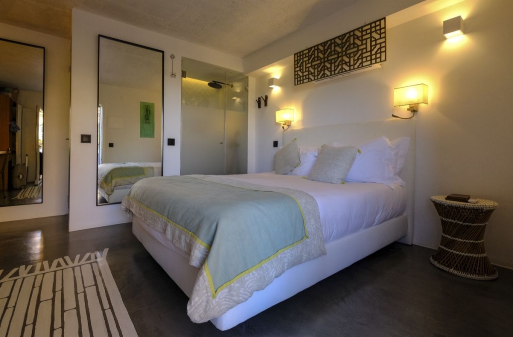 Erguida numa alfarrobeira a 6,5 metros de altura, suficientes para dali se ver o mar, só lhe falta ter cozinha para ser uma verdadeira casa. Mas tem um terraço privativo com baloiço, num piso inferior, e um chuveiro king size entre as comodidades. É o quarto mais cobiçado do Conversas de Alpendre, e na verdade nasceu de uma empreitada de José Carlos, que quis oferecer uma casa na árvore verdadeira ao neto. Segundo conta Marta, foi ele próprio que a construiu. Claro que o pequeno Francisco também não ficou a perder: no terreno onde vivem, mesmo ao lado, tem