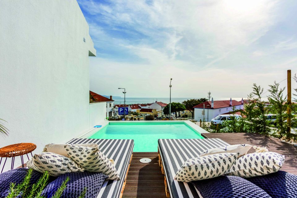 Os verdes, os castanhos e os beges marcam a decoração deste novo e descontraído hotel da Ericeira, cheio de plantas naturais e madeiras claras. Nos pormenores visuais, oscila-se entre o humor – com catos a fazerem de bengaleiros e troncos a servirem de cabeceiras – e o nostálgico, com pianos em madeira, antigas caixas do correio e outros artigos vintage a vestir a sala de estar comum. Aqui estão também sofás e uma larga coleção de livros, para quem quiser pôr a leitura em dia.