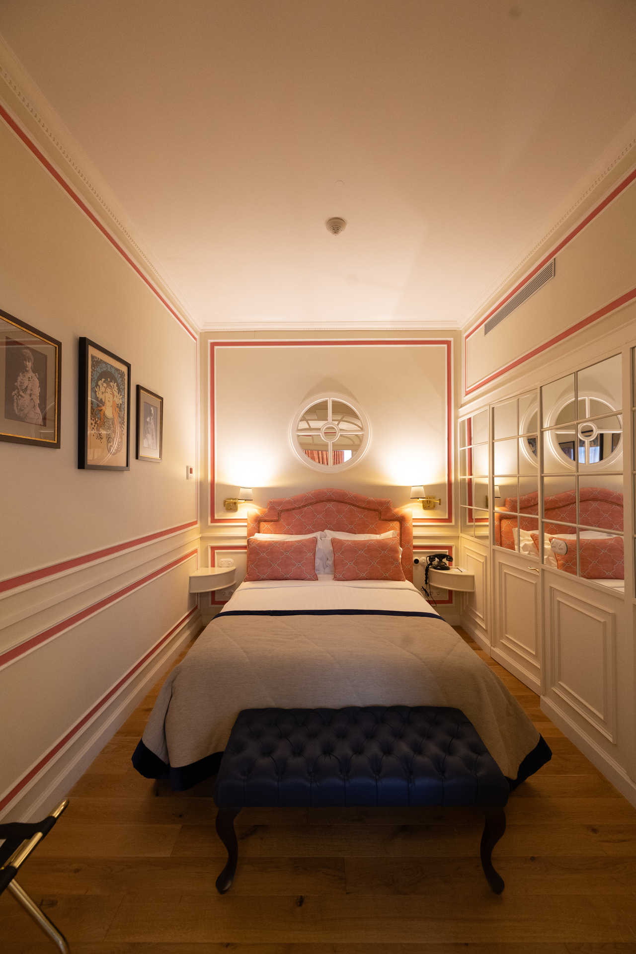 D. Pedro II chegou ao Grande Hotel do Porto na noite de 24 de dezembro de 1889. O último imperador do Brasil, regressado a Portugal após a queda da monarquia, refugiou-se com a sua comitiva real no primeiro piso do hotel. “A imperatriz já vinha doente e faleceu aqui, quatro dias depois”, conta Cristina Lemos, há mais de 30 anos a receber os hóspedes do Grande Hotel com as histórias que lhe enchem as paredes. “D. Pedro partiu logo de seguida para Paris”, continua, levando com ele a cama onde faleceu a imperatriz. Em homenagem à passagem destas figuras pelo hotel, foi criada no primeiro piso a suíte Petrópolis. É marcada pelos padrões exóticos das almofadas e cortinas, casa de banho revestida a mármore, com banheira de hidromassagem, e todos os confortos modernos, mergulhados num ambiente do século XIX. O restaurante do hotel também foi batizado com o nome do imperador, e recebe frequentemente eventos com música ao vivo, a evocar os tempos em que se enchia de opulentos banquetes, bailes e festas, e tinha até um varandim onde se instalava uma pequena orquestra a tocar sobre o salão.