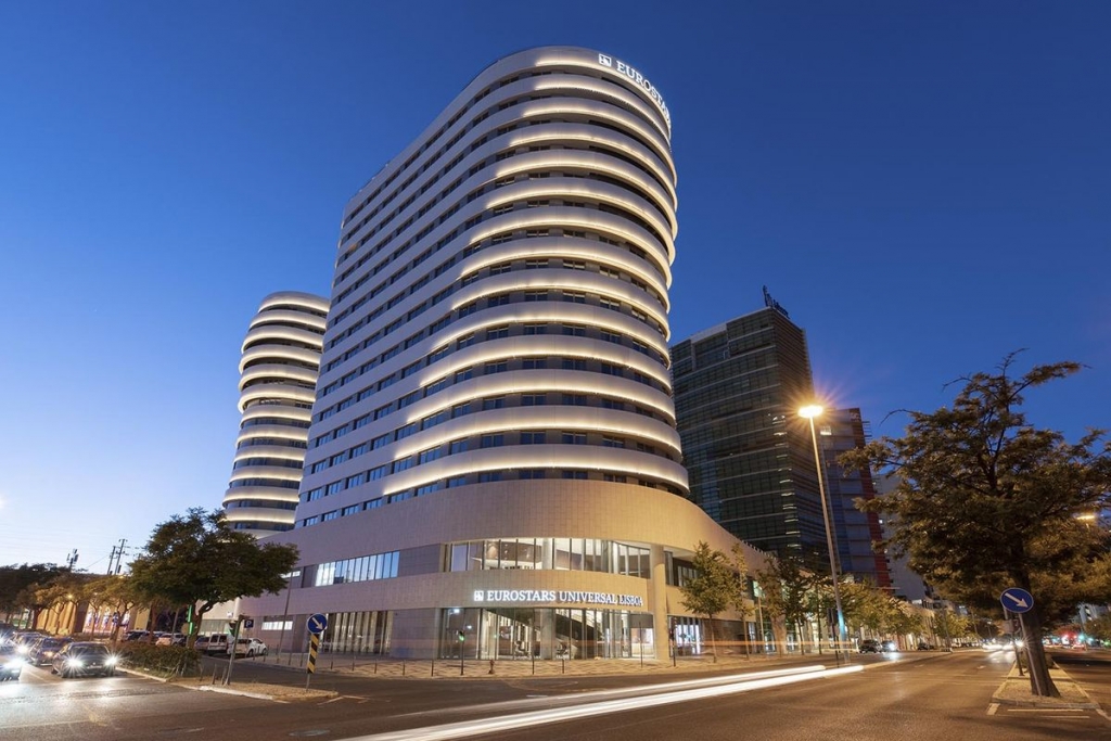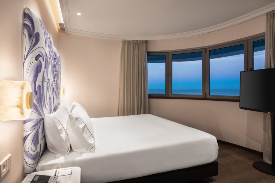 A luz branca da manhã irrompe pelas janelas curvilíneas da suíte do Eurostars Universal Lisboa. É um convite a apreciar a paisagem da Lisboa moderna do Parque das Nações, abarcando com o olhar o desenho da Ponte Vasco da Gama e ícones como o Altice Arena, o Oceanário de Lisboa e o Pavilhão do Conhecimento. Mas neste cinco estrelas, um dos dois novos hotéis do grupo espanhol Hotusa em Lisboa, há também pormenores que remetem para a cidade antiga e charmosa.