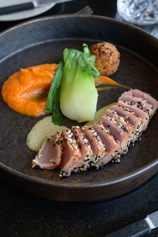 Croquetes de pato com chutney de manga e camarão com maionese de citrinos; tártaro de atum com manga, kimuchi e abacate; e beringela caramelizada com mel, soja e cebolinho são algumas das opções para partilhar. Nos principais, há risoto negro de camarão e lima e pregado com batata assada, alcaparras, espargos, tomate cherry, por exemplo. Para um final doce, são valores seguros a pavlova de frutos tropicais com sorbet de goiaba e fatia dourada com doce de ovos e baunilha.