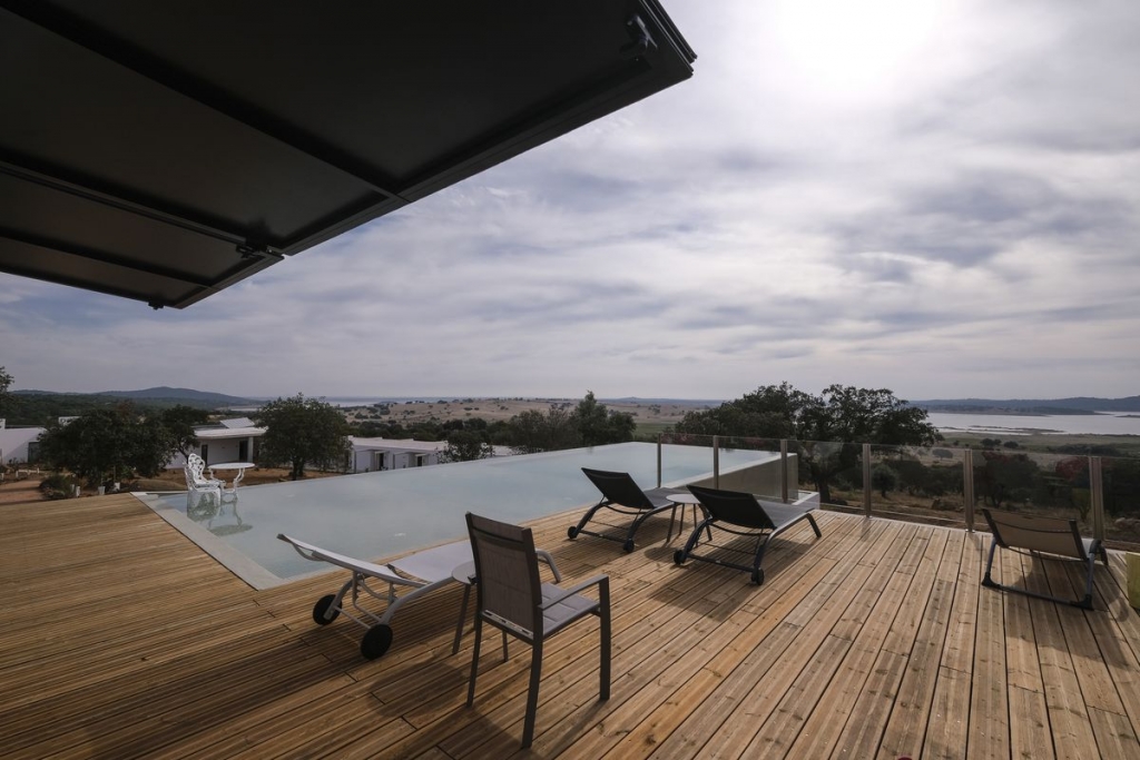 Foi neste anfiteatro de montado de azinho debruçado sobre o enorme espelho de água que Catarina Roseta e Henrique Arnaut Farinha, um casal de engenheiros viajados, decidiram erguer o Montimerso Skyscape Countryhouse, perto de Reguengos de Monsaraz. O nome sublinha a óbvia ligação à Reserva DarkSky Alqueva, onde está inserido e promove noites de observação do céu noturno, mas o hotel é muito mais do que um destino de pernoita para ver as estrelas, não obstante o que isso tem de deslumbrante.