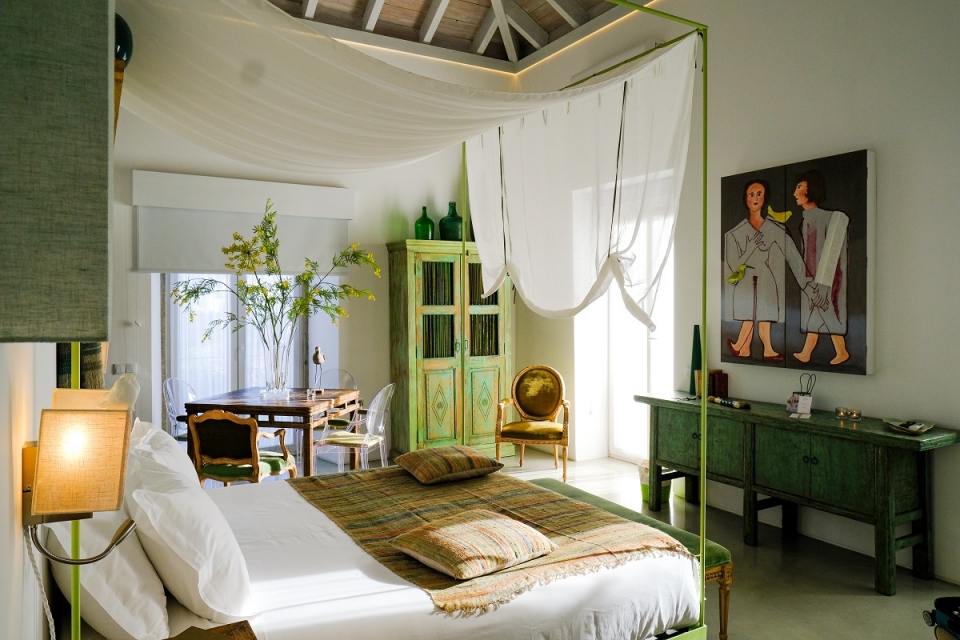 O bom gosto da decoração é transversal à suíte real (com capacidade para dois adultos e até três crianças), equipada com piscina e solário privados, à semelhança dos quartos contíguos. Nas zonas comuns pontuam estatuetas, livros e jogos tradicionais. No restaurante servem-se jantares com um menu-surpresa (mediante reserva) e o bar, com extensão para um terraço com vista, encerra às 23h.