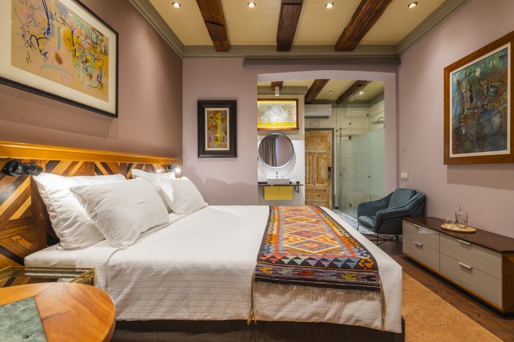 Todas as áreas do hotel têm pormenores decorativos pensados por Albert, ou não fosse ele também artista e autor dos quadros que embelezam as paredes. As mesas de cabeceira fabricadas a partir de troncos e outras peças em madeira também foram desenhadas por ele, e trabalhadas numa carpintaria em Algoz. Os quartos dividem-se em cinco tipologias: Cozy, Dreamy, Happy, Starry e Stunning.