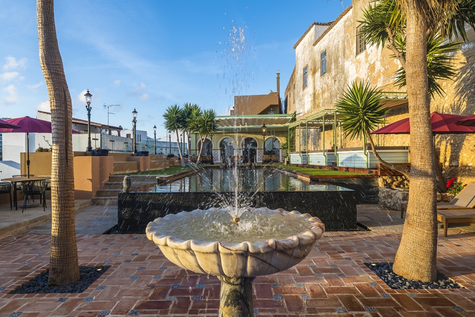 Os portões abrem automaticamente e desvendam um cenário distante do que se espera encontrar, mas em plena sintonia com a herança islâmica do centro histórico de Albufeira. Após o primeiro arco, surge uma pequena fonte em pedra e azulejo, e logo a piscina de rebordo infinito. Tudo lembra um típico riad marroquino, ou por outras palavras, o pátio interior ajardinado das casas de estilo árabe-andaluz.