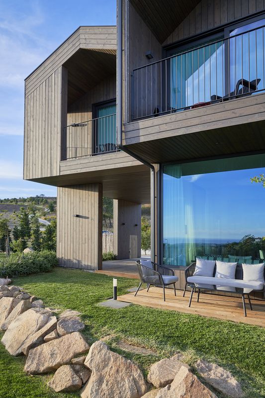 O Dream Guincho é um refúgio de madeira implantado no topo de um monte com vista para o mar, tem a serra a rodeá-lo, e é a realização do “sonho de uma vida”, nas palavras de Rosário Pinto Correia, ligada ao ensino e à gestão. Rosário sempre viajou muito. Com os anos foi acalentando a ideia, também acarinhada pelos amigos, de ter um hotel – ou uma casa de campo, como gosta de lhe chamar – e agora é ali que vive, discretamente, no hotel.