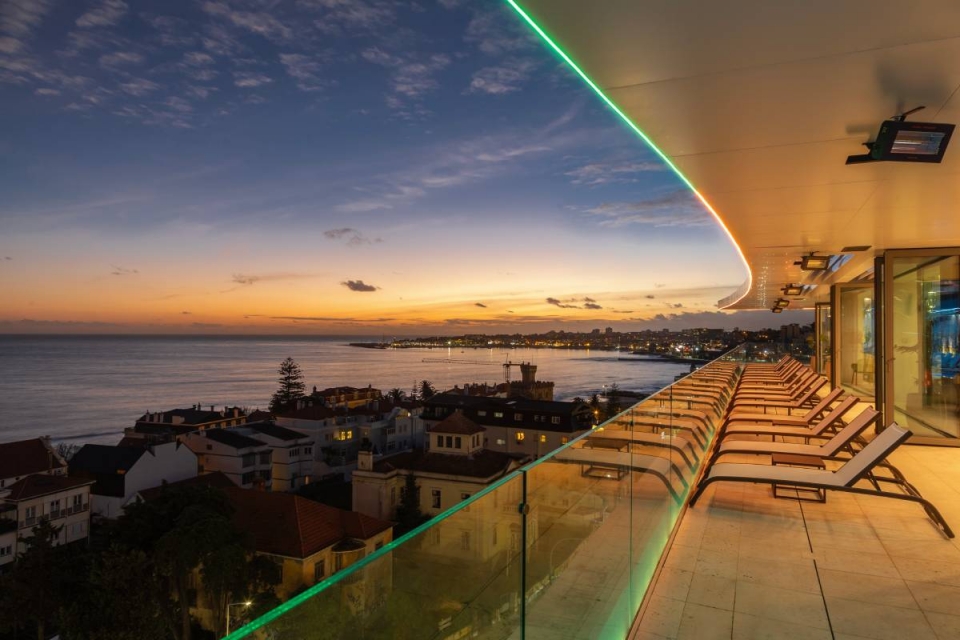 Amplo e iluminado pelos grandes vidros do chão ao teto, o átrio do Evolution Cascais-Estoril recebe os hóspedes não com a habitual receção, mas com o The Living Room Bar, de onde saem mocktails, cocktails clássicos e outros de assinatura como o Dolce Vita (beefeater dry, limoncello, xarope de maçã e canela, sumo de limão, clara de ovo e pistácio). A receção fica ao fundo e quase passa despercebida no espaço repleto de sofás, onde também é possível comer alguns snacks e petiscos. Entre quinta-feira e sábado um DJ ocupa a cabine de som.