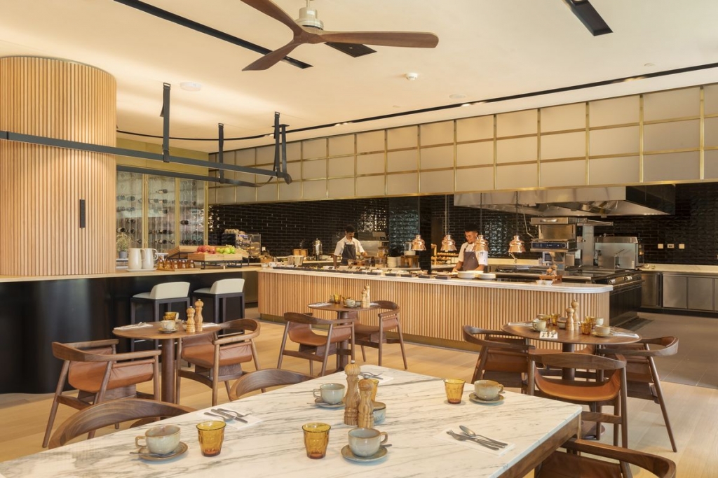 O restaurante The Kitchen é um dos espaços principais deste Evolution e está aberto tanto a hóspedes como a passantes, com acesso próprio pelo exterior. A cozinha, uma fusão de culturas operada pelo chef espanhol Javi Méndez, de 43 anos, inclui, por exemplo, um cachorro de ceviche de atum; burrata com beterraba e manjericão; brisket de wagyu com molho coreano; e entre as sobremesas sundae de maçã com biscoito. Da responsabilidade do chef será também a carta do The Upper Deck, com piscina exterior, que ocupa o 7. piso.