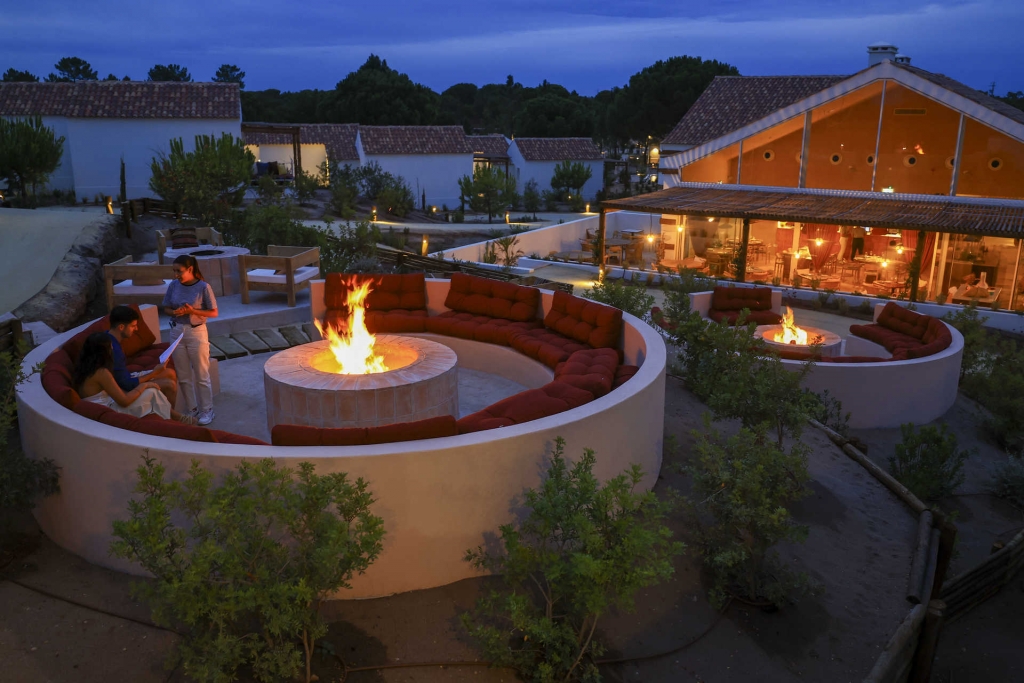 A valorização do saber-fazer da região foi, de resto, uma das prioridades na conceção deste novo hotel de quatro estrelas com 40 quartos e 38 villas (T0 a T5), aberto em agosto na aldeia de Bicas. “Quisemos recriar uma aldeia alentejana, com casas brancas e próximas, onde as pessoas se veem umas às outras”, contextualiza Duarte D’Eça Leal, um dos quatro irmãos donos do grupo Independente. E se o exterior é marcado pelos pinheiros-mansos e pela vegetação mediterrânica, o interior, meio rústico, é uma ode às artes manuais.