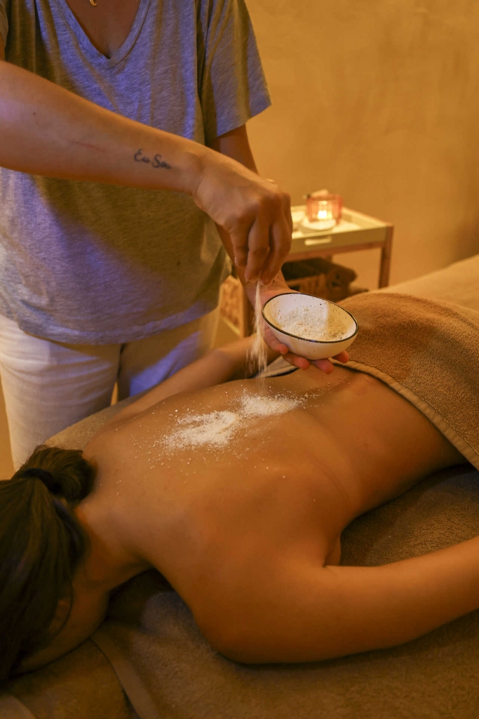 Com quase duas décadas de consultoria e gestão de spas, Filipa Santos desenvolveu para o Independente Comporta um “conceito de spa único na região”, em que a maioria dos tratamentos se baseia em “ingredientes como o arroz, o sal, as ervas, o azeite e a grainha de uva”. O Pó de Arroz (185m) junta esfoliação e envolvimento de corpo inteiro seguida de um duche no gabinete e de uma massagem corporal com manteiga de karité, e termina com um tratamento de rosto com arroz e argila branca e uma massagem oriental à cabeça.