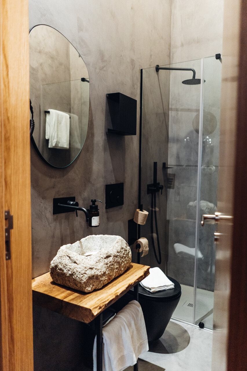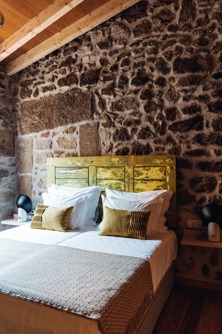 Foram conservados vãos de portas e janelas; aliou-se a pedra a um ambiente acolhedor, recorrendo a matérias-primas como o burel, a lã ou a cortiça; portas e outros materiais encontrados “in loco” deram origem a cabeceiras. A decoração ficou a cargo da arquiteta de interiores Teresa Pinto Ribeiro.