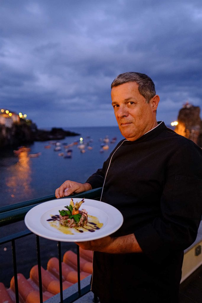 O peixe-espada preto, um dos ícones locais, é presença frequente na carta, mas aqui serve-se com milho frito e crocante de alho francês, em alternativa ao habitual, com banana e molho de maracujá. Ao peixe-espada preto fazem companhia frequente o polvo, garoupa, bodião e cavala, algumas das espécies comuns nesta zona. As típicas lapas podem ser provadas como parte de um risoto e a poncha é, claro está, obrigatória.