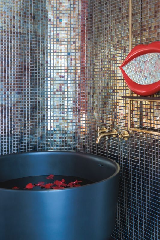 “Queremos que os nossos hóspedes despertem o lado mais ousado e sensorial das estadias”, diz Cátia Campos enquanto apresenta à Evasões o Angels Bar, cujo papel de parede retrata a preto e branco uma orgia na Idade Média. Além de bar, o espaço recebe noites de quiz e drag bingo e sessões de stand-up comedy, com agenda/bilhetes disponíveis no website. Para que ninguém perca uma pitada da animação, a música soa também no interior da casa de banho.