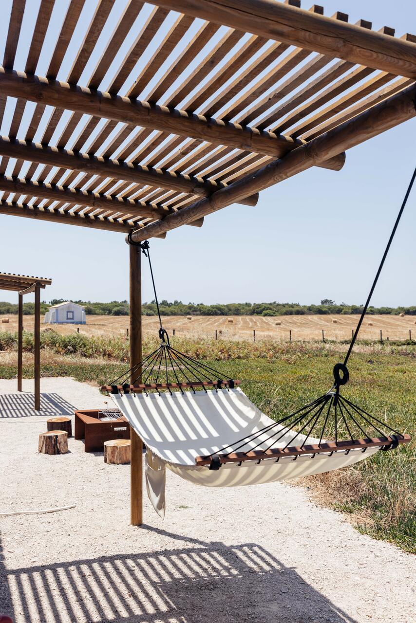Quando o corpo pede descanso e a paisagem campestre inspira a contemplação, quiçá ao som do poema cantado por Rui Veloso, os hóspedes encontram conforto e autonomia nas 16 unidades originais, divididas entre estúdio simples ou com mezanino e casas T1 e T2 (qualquer uma das tipologias com kitchenette e alpendre privado). Este verão, os oito hectares operados pela Amazing Evolution expandiram-se para ainda mais perto do mar, permitindo somar dez T0 a T2, todos com cozinha e máquina de café, micro-ondas, placa, frigorífico, torradeira e chaleira.