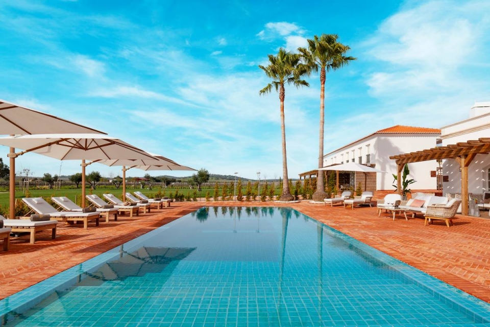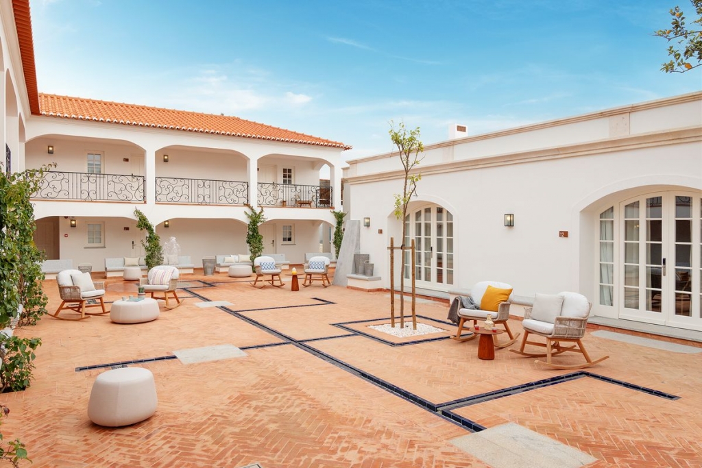 Com arquitetura e design de interiores assinado pelo gabinete Saraiva & Associados, o projeto recuperou uma casa senhorial do século XIX com dupla escadaria frontal e um pátio andaluz – onde se localizam um T4 e três charm apartments – e converteu devolutos pavilhões agrícolas numa nova ala com restaurante, ginásio, sala de eventos, bar e terraço e três signature suites. Conservaram-se arcadas em tijolo-burro, muros de cal, ladrilhos em terracota e celosias típicas do Alentejo, casando-as com mobiliário em nogueira e obras de David Reis Pinto, nos quartos.