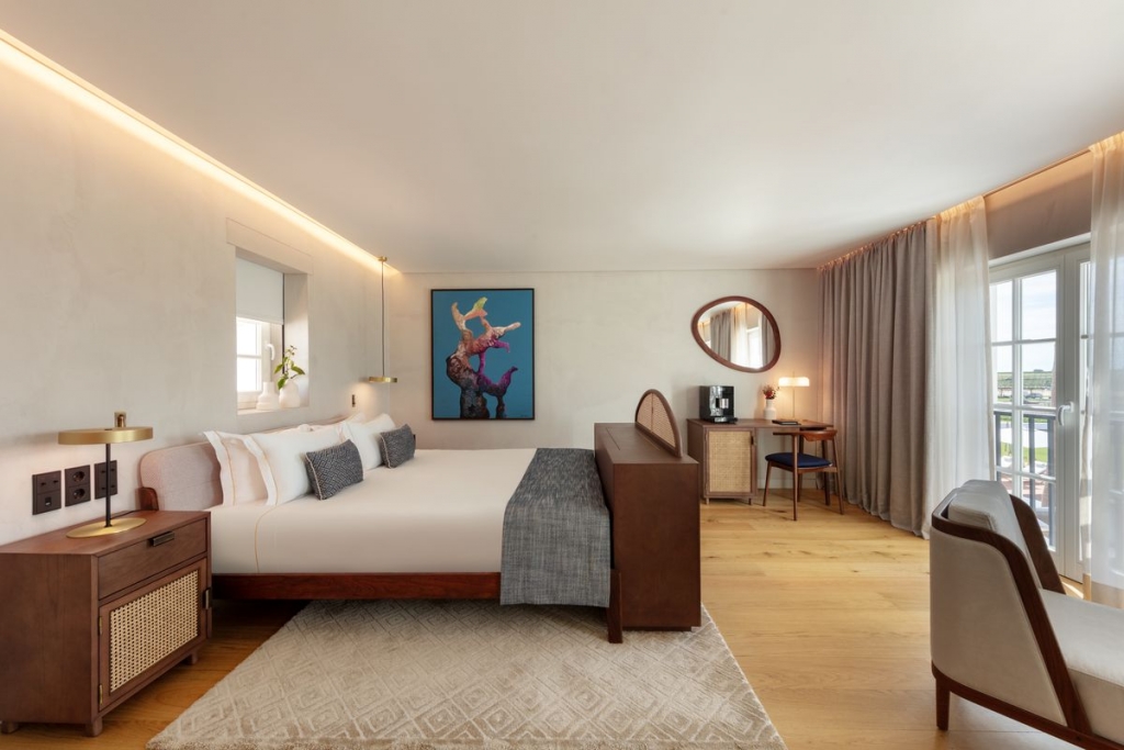 O “luxo silencioso” de que a diretora fala assenta “na simplicidade e nos detalhes” escondidos nos 22 quartos: portas-chaves em couro; amenities Amouage com perfume natural de sândalo; colunas bluetooth; máquina de café com blend exclusivo 100% arábica com origem no Brasil e torrado no hotel; chá e infusão de ervas do Alentejo da Infusões com História; lençois e toalhas da Lameirinho; e a possibilidade de os hóspedes levarem ou requisitarem um mordomo para as refeições e experiências. Nem o céu é o limite, já que o hotel tem o próprio avião Pilatus PC12.