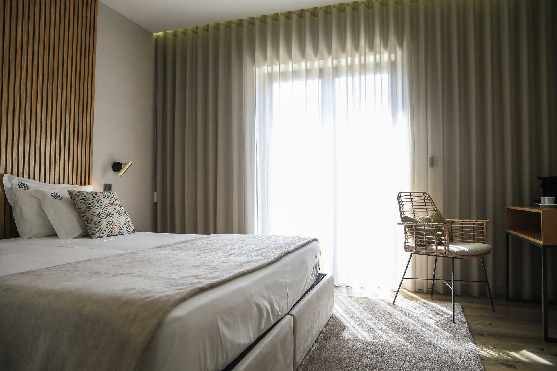No lugar de uma casa do século XIX em ruínas está agora um edifício de face robusta, com oito quartos e três apartamentos. É o RB Santiago Hotel Rural, que alia o conforto dos interiores às alegrias da vida ao ar livre. A zona relvada nas traseiras – com piscina, parque infantil, mesas de piquenique e máquinas para exercitar o corpo – é uma mais-valia deste negócio familiar inaugurado, em maio, em Poiares, freguesia do concelho de Ponte de Lima. O hotel, assim batizado devido à proximidade ao Caminho de Santiago, pretende servir de bálsamo a todos os hóspedes, sejam peregrinos ou famílias ávidas daquele sossego campestre.