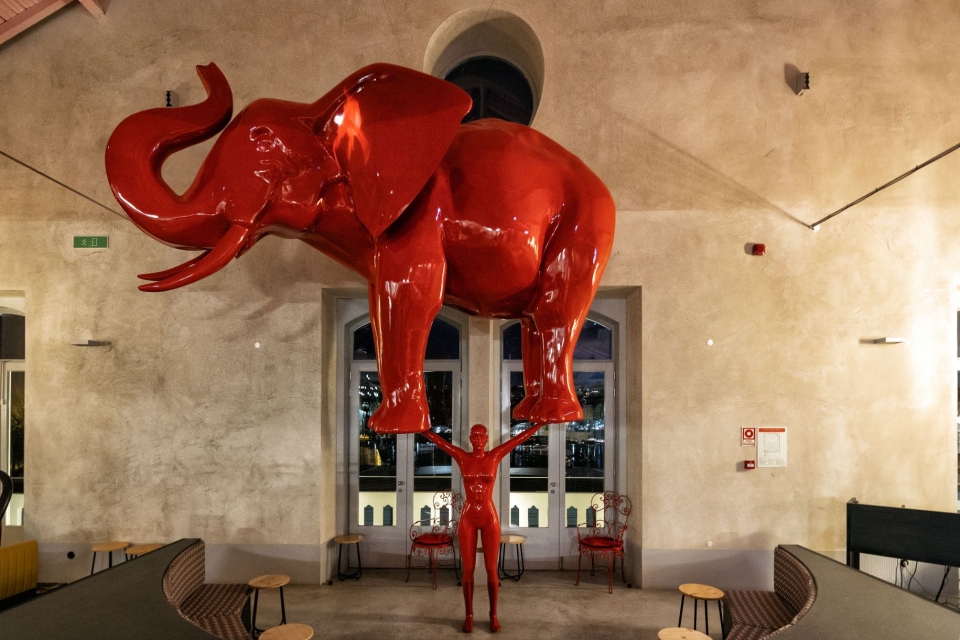 Comida, bebida e um elefante na sala