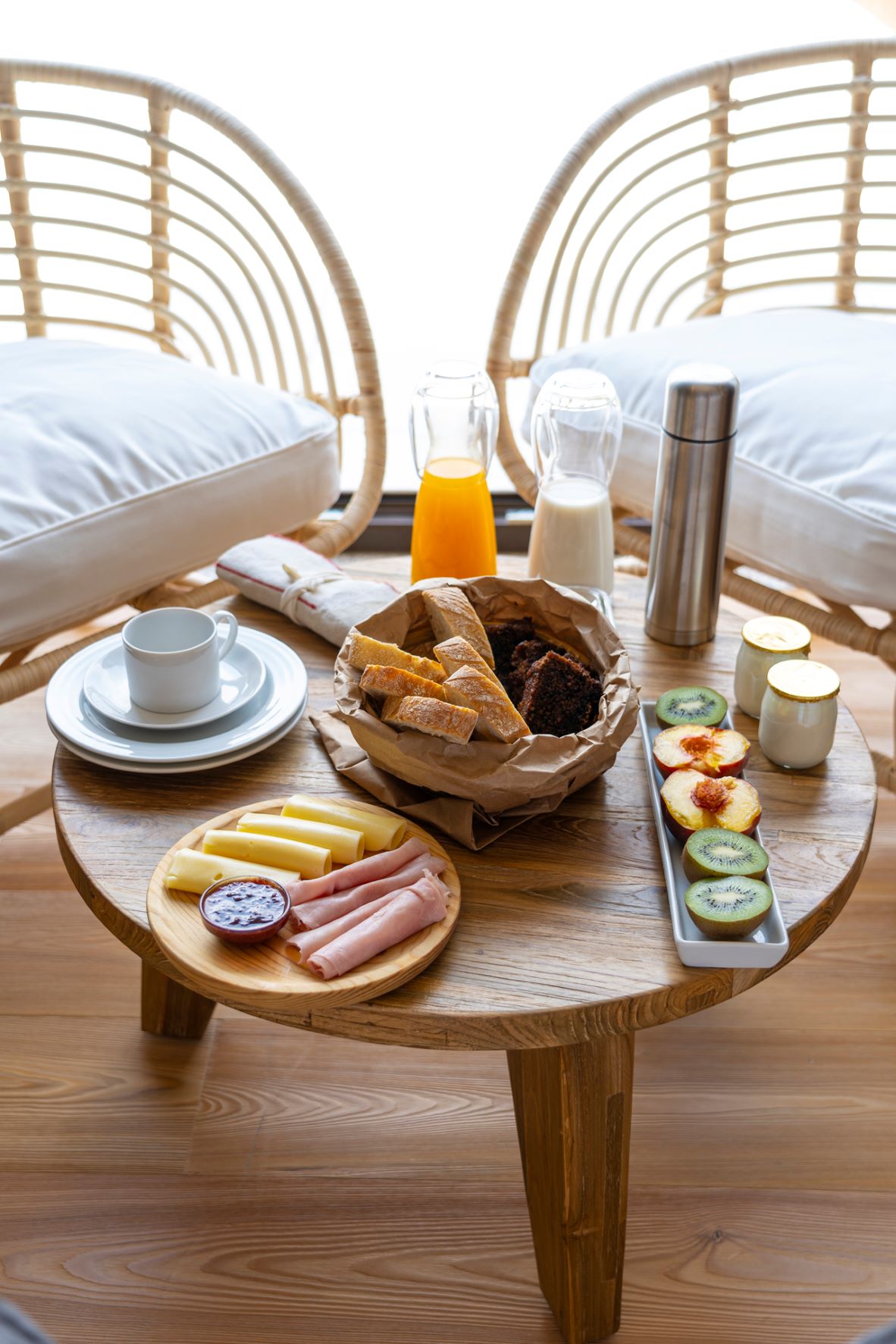 Mediante reserva, juntam-se à lista, almoços ligeiros no terraço sobranceiro ao rio, e jantares com menu de três momentos. De manhã, a pedido, também é deixado à porta do quarto um cesto de piquenique com o pequeno-almoço, para tomar na varanda ou em algum outro recanto da quinta, sempre com o mesmo cenário de fundo: o Douro a serpentear entre as encostas recortadas em socalcos.