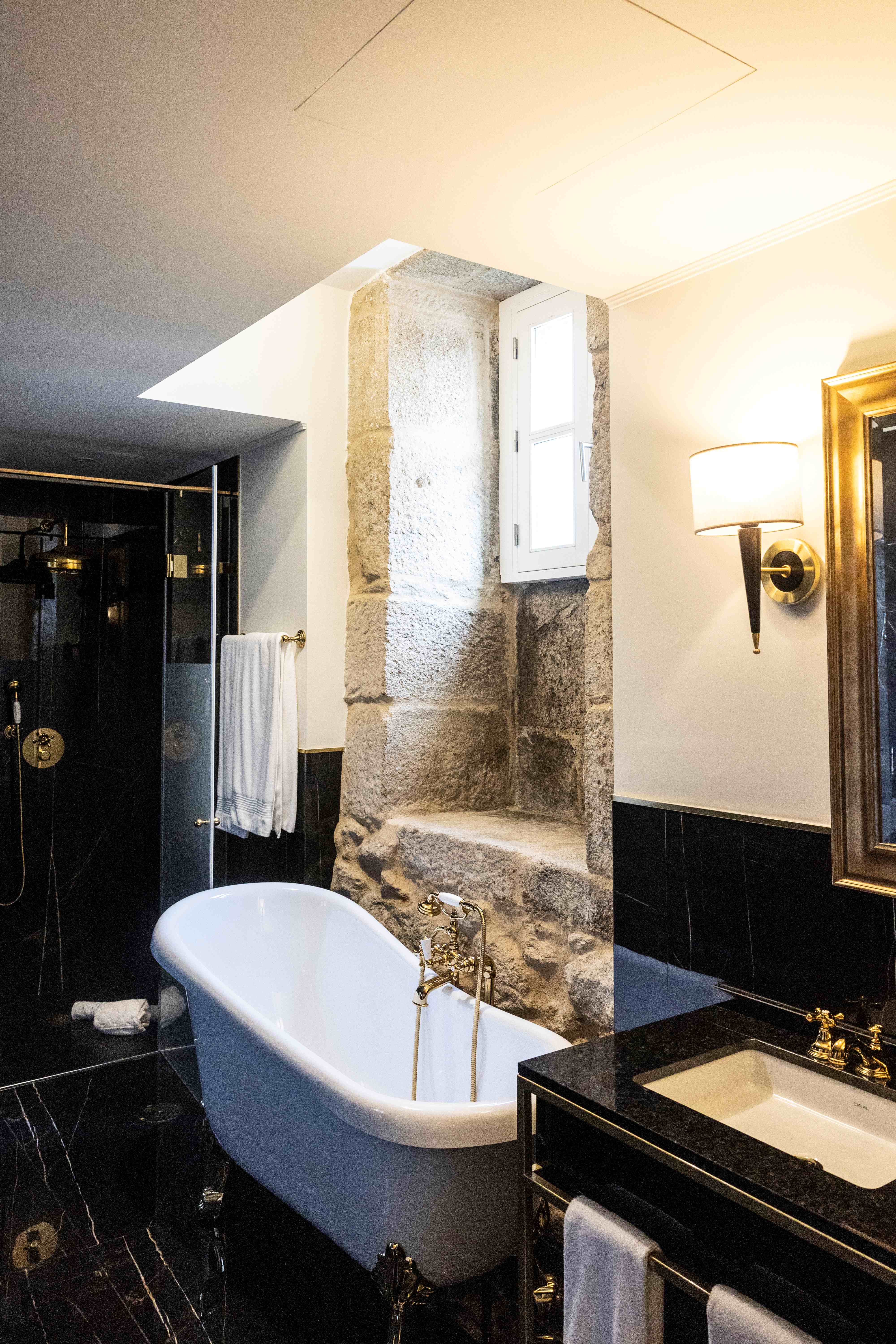 O edifício solarengo, de duas torres ligadas por um corpo mais baixo, está rodeado de jardins com espelhos de água e apresenta uma decoração clássica e sóbria, replicada na ala mais moderna. Os quartos primam pelo conforto, com camas king size e almofadas que parecem nuvens.