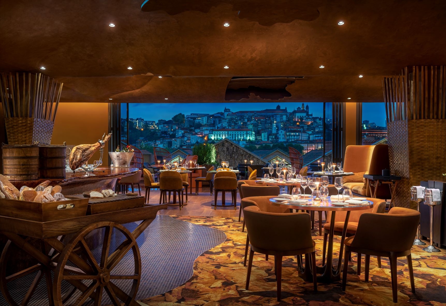 O cinco estrelas, instalado nas antigas caves da Real Companhia Velha, a dois passos do rio Douro, proporciona uma viagem pela mais antiga região demarcada do Mundo, à boleia de um ambiente concebido à volta do vinho, pensado pela designer de interiores Nini Andrade da Silva. O hotel apresenta 119 quartos, divididos por sete andares, nas tipologias superiores, deluxe, terrace deluxe – com acesso direto à piscina exterior aquecida -, e suítes standard, junior e signature, sendo que as últimas acolhem, nos seus 215 m2, duas suítes, sala de estar com lareira, kitchenette e uma sala de jantar. Das janelas dos quartos, confortáveis e espaçosos, ora se vê a piscina, ora se contempla o rio Douro e a ribeira do Porto.