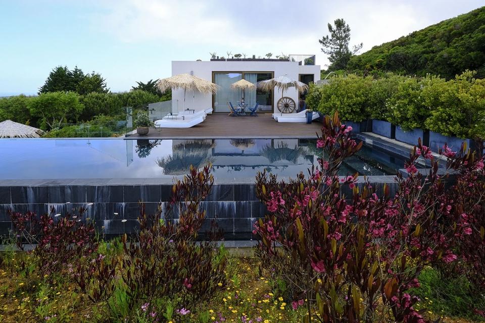 Quando Mariana descobriu este pedaço de terra em Fetais, no Parque Natural da Arrábida, não havia praticamente nada – só um mar de pinheiros mansos e o oceano. Desde 2019, quem ali chega vê um hotel de baixa intervenção no terreno: existe apenas um edifício principal (onde funcionam o restaurante, sala comum e três quartos no piso inferior), uma piscina ecológica de rebordo infinito; e duas eco-villas com kitchenette, preparadas para animais de companhia. O projeto, despojado de grandes luxos, inspirou-se nas lições do epicurismo, do filósofo grego Epicuro, que defendia a busca da vida feliz através de desejos e prazeres moderados e sem grandes perturbações.