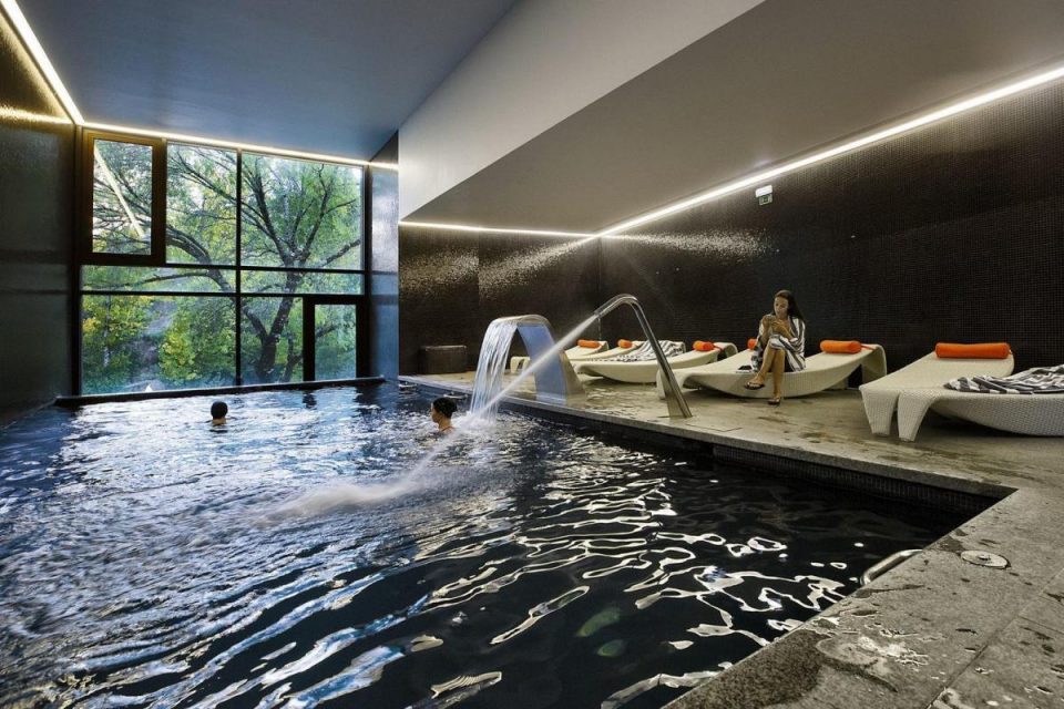 O spa está equipado com uma piscina termal hidrodinâmica e tem sauna, banho turco, duche de contraste e salas de tratamento para massagens. No exterior, com vista para a paisagem de choupos que rodeia o empreendimento, estendem-se outras duas piscinas aquecidas, uma delas semi-coberta e com a água a 38 graus.