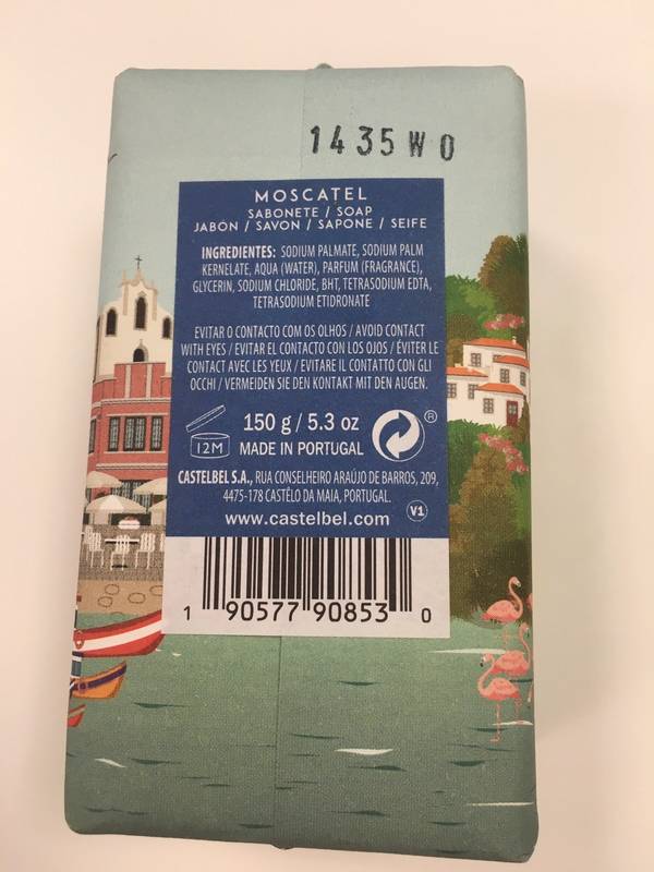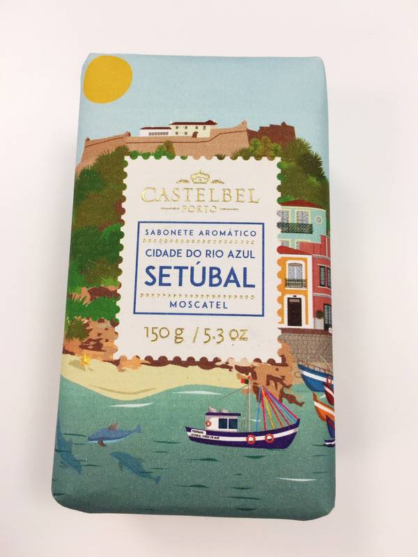 O sabonete, de 150 gramas, resultou de “um exercício muito interessante, com um desenvolvimento conjunto dos motivos figurados no rótulo e do aroma a moscatel”, explicou Aquiles Barros, fundador e administrador da Castelbel. O aroma foi sugerido pela Câmara de Setúbal “como caraterístico da cidade e da região”.