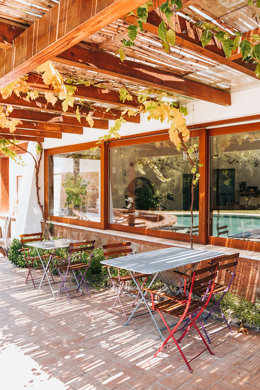 Mas essa é apenas uma das faces visíveis do projeto, que além de se estender à vertente social e comunitária passou a integrar, de forma natural, um eco-resort. Composto por nove quartos (todos com mezzanine, design minimalista e mobiliário up-cycled), piscina exterior e restaurante de comida vegetariana e vegana feita com produtos da horta, o alojamento convida a dias de descanso e imersão na natureza. “Temos bom wi-fi, mas não temos televisão”, comenta Nita Barroca. Os planos são encerrar no final de outubro e reabrir com mais quartos e serviços.