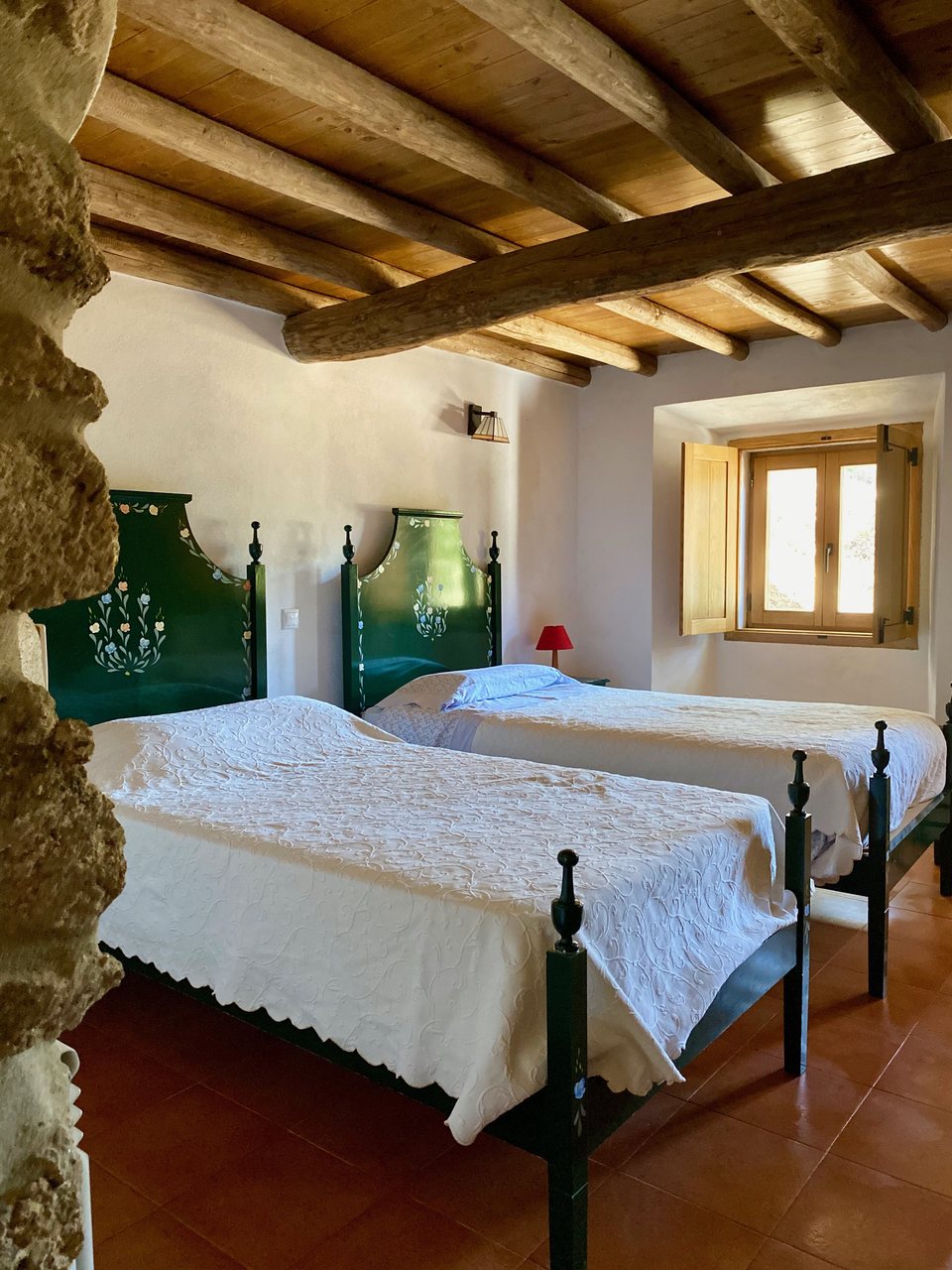Dormir num dos cinco quartos duplos ou no estúdio com kitchenette e mergulhar na piscina é apenas uma parte da experiência. Paula e a equipa também guiam os hóspedes em passeios pela paisagem mediterrânica de montado (podendo observar javalis, raposas e lontras), e convidam a fazer jogos sobre biodiversidade e caças ao tesouro, ou tão-só andar de bicicleta.