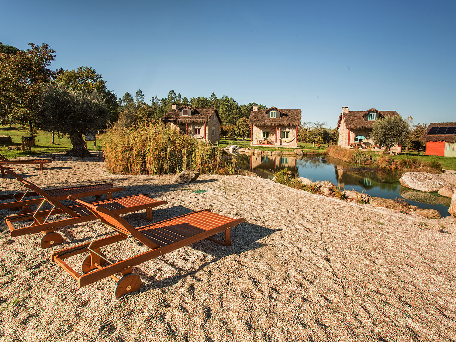 Com as paredes em pedra e os telhados cobertos por giestas (ainda que apenas decorativas), as casinhas do Chão do Rio parecem fazer parte de uma história de encantar, com o seu ao lago coberto por nenúfares, na aldeia de Travancinha, em Seia. A história delas começou a escrever-se há cerca de vinte anos. “Sempre gostámos de fazer férias junto da Natureza, e de fazer caminhadas. Já tínhamos vontade de comprar algo, um sítio onde pudéssemos plantar árvores e visitar aos fins de semana”, começa por dizer Catarina Vieira, que, ao lado do marido, gere o negócio. Esse sítio acabou por se materializar no Chão do Rio, que o casal comprou.