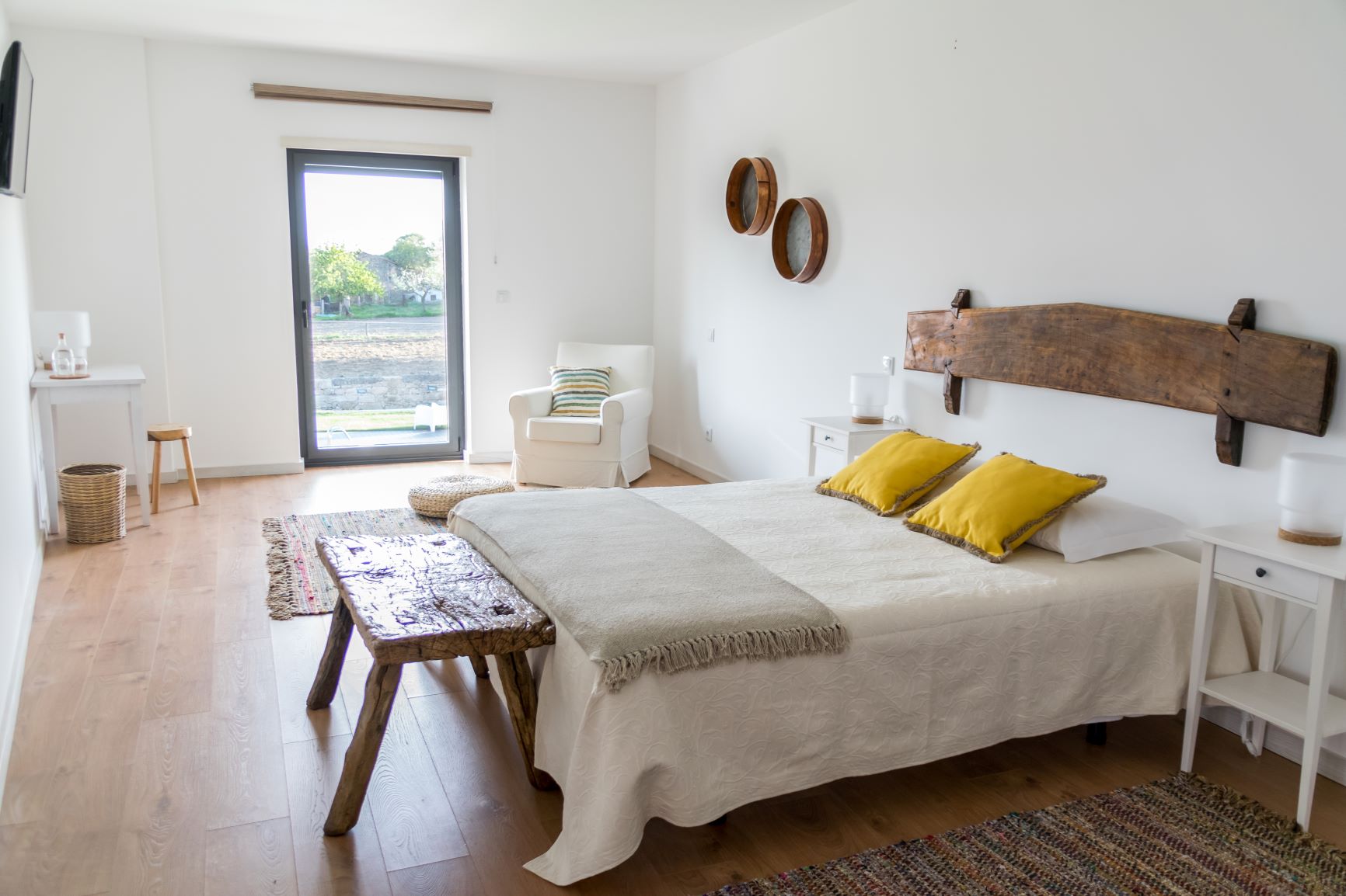 Além das quatro suítes no edifício principal, o alojamento estende-se ainda a nove casas rústicas espalhadas pela propriedade, de diferentes tipologias (do T1 ao T4), pensadas para receber famílias mais ou menos numerosas. Todas estão equipadas com kitchenette ou cozinha completa e têm terraço privado. Na mercearia da quinta, os hóspedes podem abastecer-se de produtos da horta biológica, conservas caseiras, vinhos e carne maronesa.