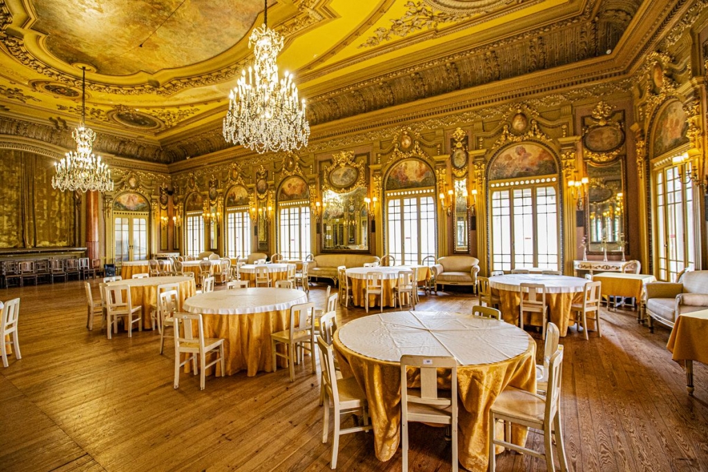 Percorrer os salões e dependências deste edifício – encaixado entre dois troços da muralha fernandina, que o mantém húmido no inverno e abafado no verão – é ouvir ranger as tábuas de madeira a cada passo e deter o olhar em pormenores reveladores de um passado grandioso. Disso mesmo dão conta os símbolos de cartas de jogar nos papéis de parede dos corredores, vestígios do casino e testemunhos ainda do clube masculino Le Monumental, que se instalou ali a partir de 1920 e era frequentado por uma elite de “refugiados” ricos europeus adeptos do jogo e de outros vícios.