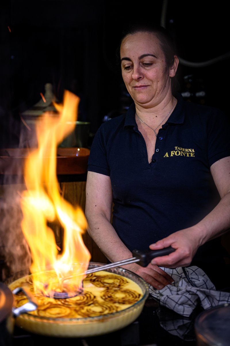 Na rota dos sabores de Trás-os-Montes, faça-se 20 minutos de carro para ir comer o também afamado arroz de grelos, na povoação de Santa Eugénia. À frente da Taberna a Fonte está Marisa Avidago, que em 2013 enfrentou a crise económica e o desemprego dando um passo arrojado. Um dia, disse ao meu marido: “Não nasci para ser dona de casa, não posso estar aqui sem fazer nada. Vamos abrir um café lá em baixo”. Este “em baixo” é o rés-do-chão da casa que tinha adquirido com Paulo e que estava desaproveitado.