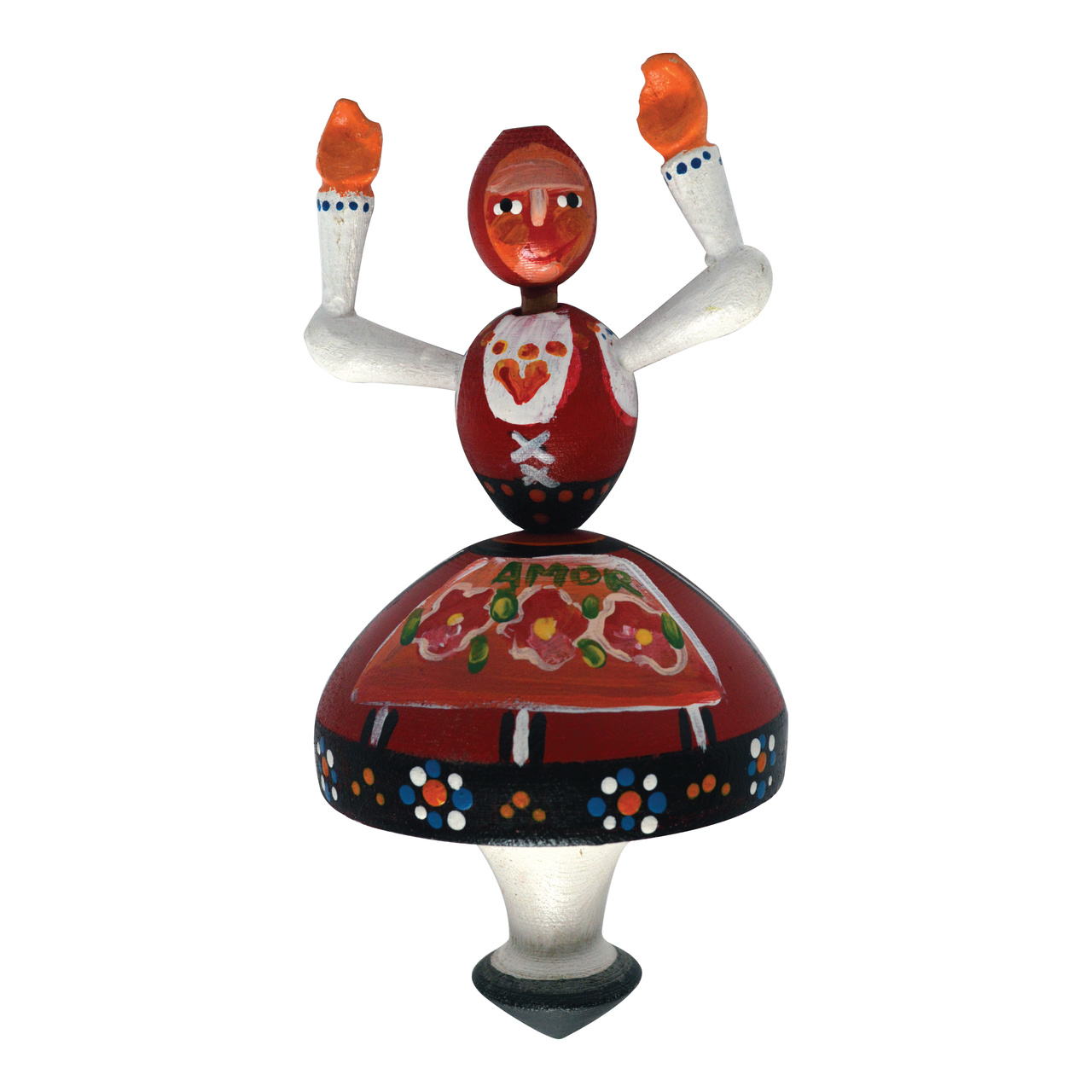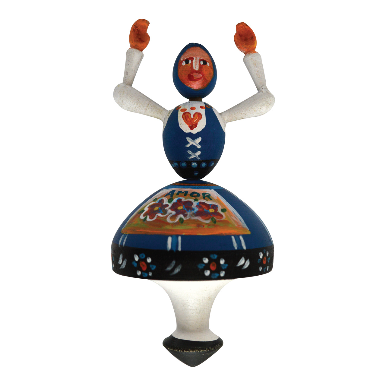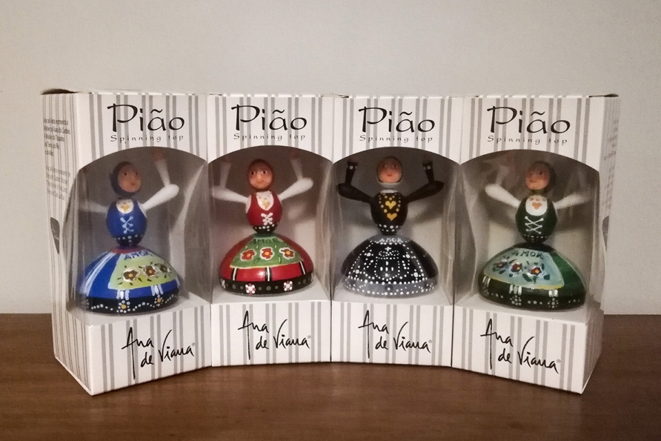 As lavradeiras criadas por Arnaldo Alves Rodrigues, em 2014, e lançadas no ano seguinte, são piões que parecem encetar uma dança, quando postos a rodar – primeiro na mão, depois numa mesa ou noutra superfície amiga destas figuras femininas esculpidas na madeira e pintadas manualmente, peça por peça: saia, tronco, cabeça e braços erguidos acima da cintura estreita, a lembrar o dançar folclórico vianense. “Quando as pessoas veem a Ana de Viana, nem sabem que é um pião. Quando a ponho a rodar, é aquela surpresa…”, observa, com satisfação.