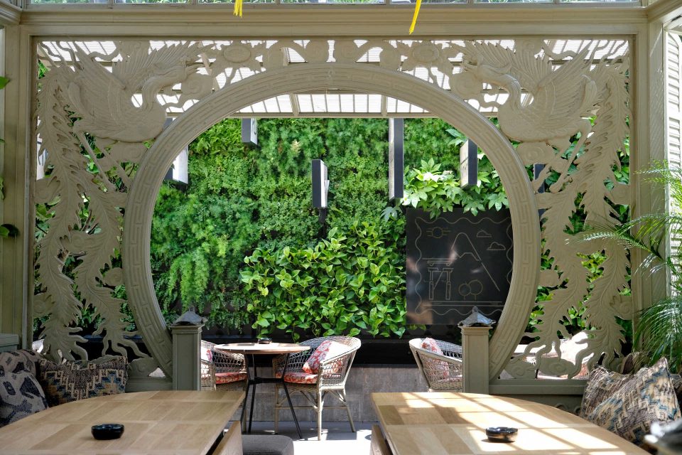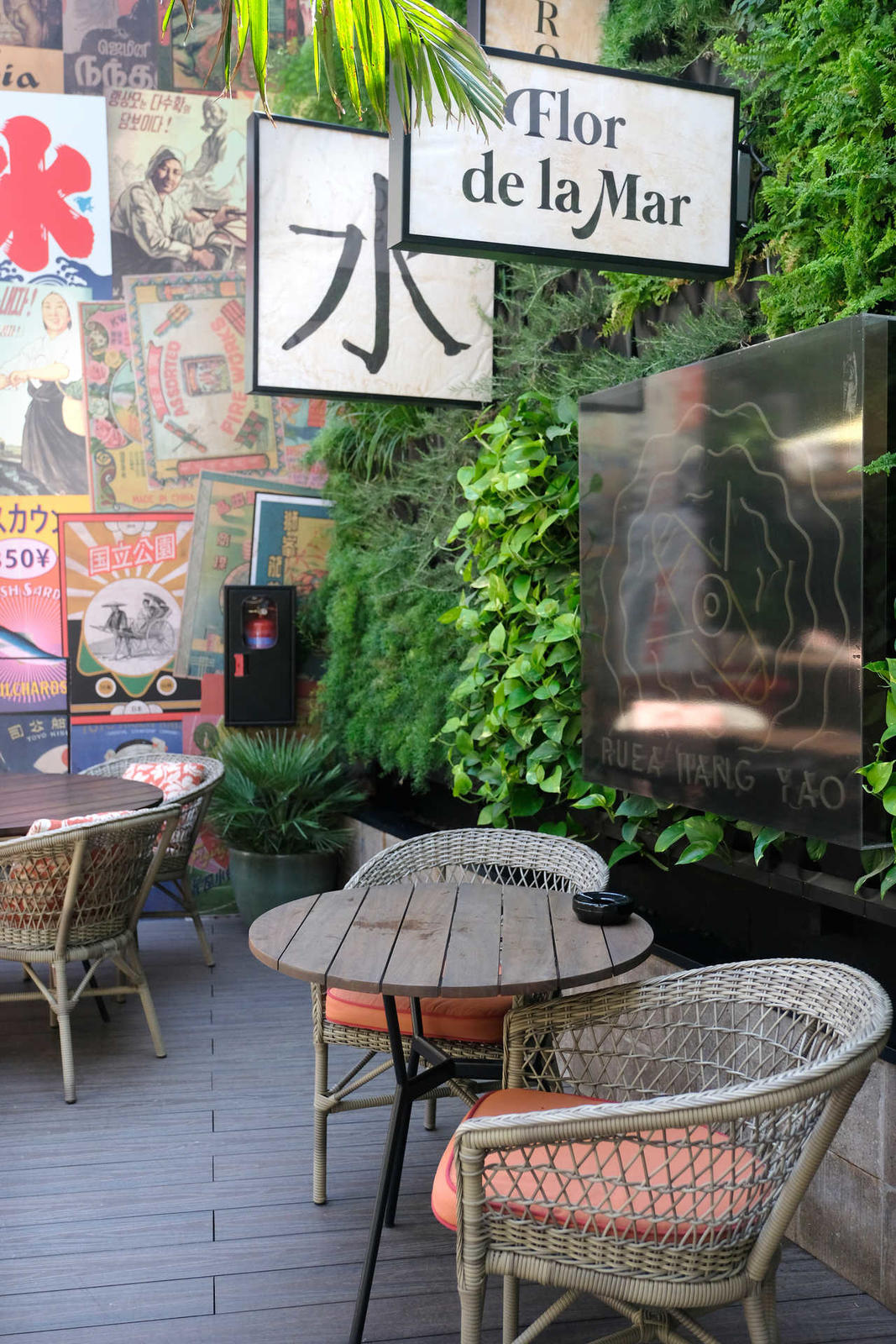É difícil pensar-se que se está em plena Avenida da Liberdade. Nas traseiras do novo e elegante JNcQUOI Asia, a sua descontraída e tranquila esplanada faz lembrar o ambiente das ruas de Tóquio e Bangecoque, com jardins verticais, luzes neón que se acendem de noite e mensagens escritas em hindi e japonês, com referências a Vasco da Gama e a «Os Lusíadas». O espaço é convidativo, ideal para se fazer uma pausa da movimentada artéria onde se encontra instalado.