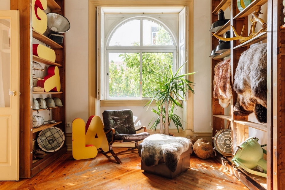 Ao longo de dois pisos, pelo espaço onde viveu durante quase cem anos uma comunidade jesuíta, vendem-se agora mobiliário industrial do século XX, algumas de designers de referência e recuperadas, apostando-se na sustentabilidade. Pelas 16 salas do Lx Lapa, encontram-se peças vintage e influências escandinavas, com artigos de tapeçaria, candeeiros, secretárias, cadeirões, cerâmicas, cadeiras de baloiço, sofás e letreiros antigos para todos os gostos, entre outros achados de Sérgio e Filipa Cândido Pinheiro. São eles os criadores desta nova loja, nascida como alternativa ao plano inicial que tinham para o palacete, o de construir um hotel cinco estrelas, que a pandemia veio adiar.